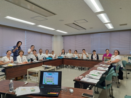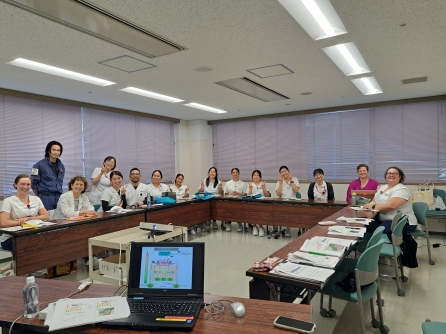 お隣の聖隷クリストファー大学に研修に来ているサミュエルメリット大学の皆さまが当院にも見学に来てくれました。この日は特に救急医療についてになります。北堀次長が病院概要を説明した後、救命救急センターのY係長から救急医療・看護について話をしました。天候が悪くドクターヘリは格納庫に入って見られず残念でしたが、ヘリポートだけの見学も盛り上がったようです。国が違っても看護学生に大人気のドクターヘリとフライトナースの活動ですね。