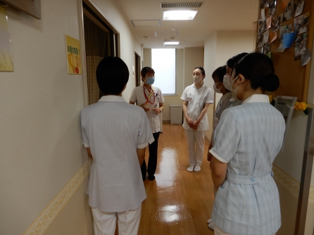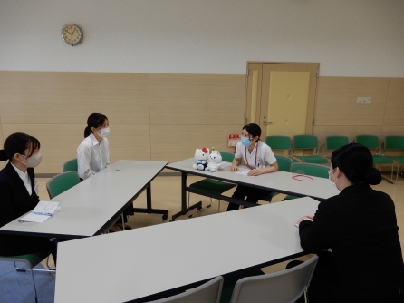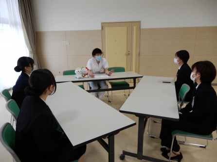 学生さんの夏休み期間を使って病院説明会やインターンシップを開催しています。説明会では若手看護師との交流時間をもっていますので、学生さんは多数の質問をして情報を得ることができるので好評です。