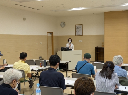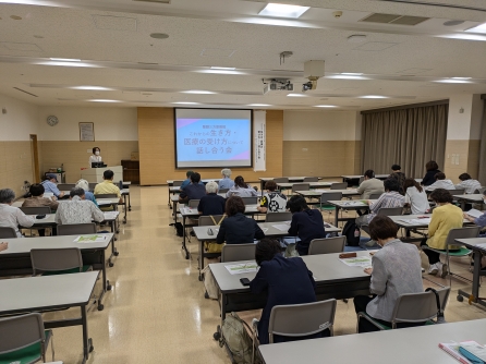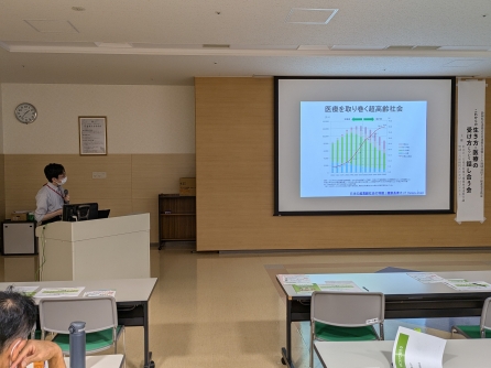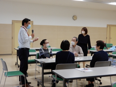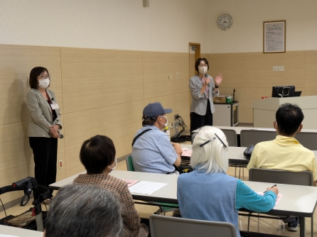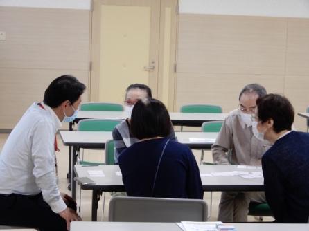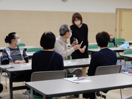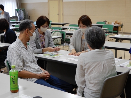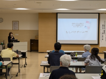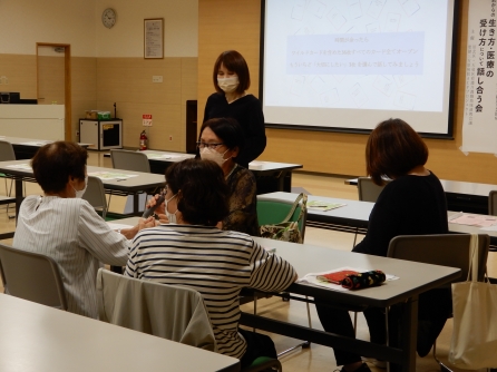 自分の事を見つめ直したその後直ぐに、「人生会議手帳」について地域包括支援センターの委員から紹介してもらいました。この手帳の持つ意味、記載のタイミングなどとても分かりやすく教えてもらいました。