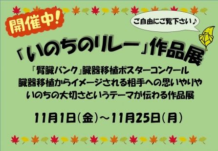 医学情報プラザにて「いのちのリレー」作品展を開催中です。