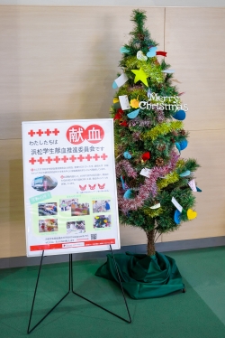 浜松学生献血推進委員会さまより、「全国学生クリスマス献血キャンペーン2024」(*)でお寄せいただいたメッセージツリーを展示しました。