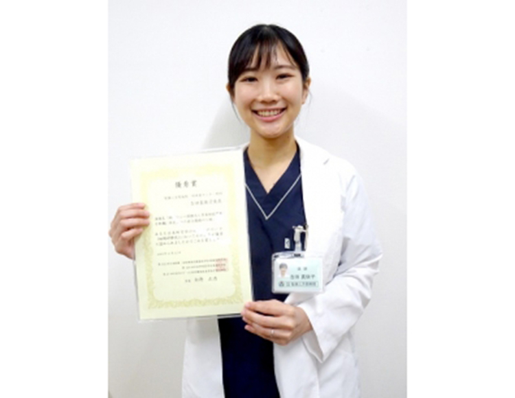 こんにちは! 今回は少し遅れてのご報告になりますが、この場をお借りして是非ご紹介させて頂きますね♪♪ 実は昨年11月11日(土)~12日(日)に行われた「第124回 日本呼吸器学会東海地方会」で1年目研修医3名が発表し、 Y先生が見事“優秀賞”を受賞しました!! Y先生は指導医の呼吸器外科K先生から学会発表のいろはを教えて頂きました。 初めての学会発表だったにもかかわらず、このような賞を受賞できたことは今後の励みにもなりますね。Y先生、優秀賞受賞おめでとうございます。 また、指導医のK先生、お忙しい中ありがとうございます。当院では1年目研修医時代から、全