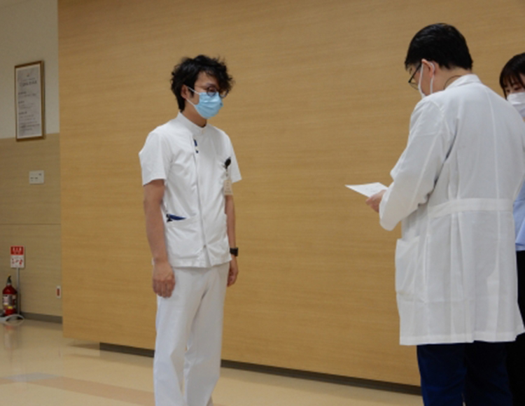 5月の朝礼はC5病棟の課長代行の辞令がありました。Hさん、約半年ですが貴重な機会です。みんな協力してくれますので、明るく前向きに取り組んでいきましょう! 永年勤続の表彰式もありました。これまで本当にありがとうございました。これからもよろしくお願いします。