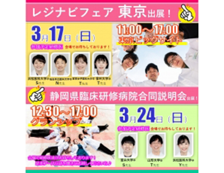 研修医日記3/17(日)レジナビ東京 & 3/24(日)静岡県病院合同説明会ご案内!