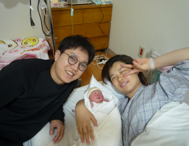 夜中3時に痛みで目が覚めて陣痛で入院となりました。 病院に来てからは順調に陣痛が強くなり、すぐにたんぽぽへ移動となりました(^^)/ 付き添いのパパもやや緊張気味でしたね。ママは息みがとても上手で、赤ちゃんも狭い産道をがんばって降りてきてくれたので超安産でした(^^)v 赤ちゃんはほっぺがムチムチでついツンツンしたくなる可愛い女の子ですね。 家族が1人増えて幸せいっぱいですね☆ 出産おめでとうございます♪♪