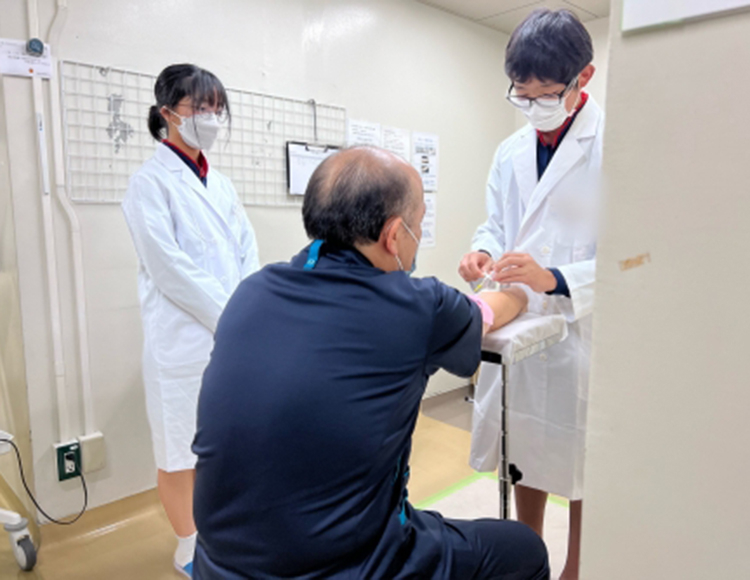 10月16日、17日に中部学園(中学生)から8名の生徒さんの職場体験を受け入れました。 毎年秋に、市内中学校の学生の職場体験受け入れを行っています。 2日間で、1日一職場ずつ医療技術部門の薬剤部、画像診断部、CE室、リハビリテーション部、臨床検査部で受け入れます。~薬剤部~ 医師の指示に基づきいろいろな薬剤を調製します。飲みやすいように小分けにしたり、粉砕することもあります。普段自分がお薬をもらうときは、すぐ飲める状態になっているので、このような段階があることにびっくりですね!~画像診断部~ 放射性医薬品(注射で体内へ投与して病気の原因を調べる為に使う医薬品)の注射のやり方を疑