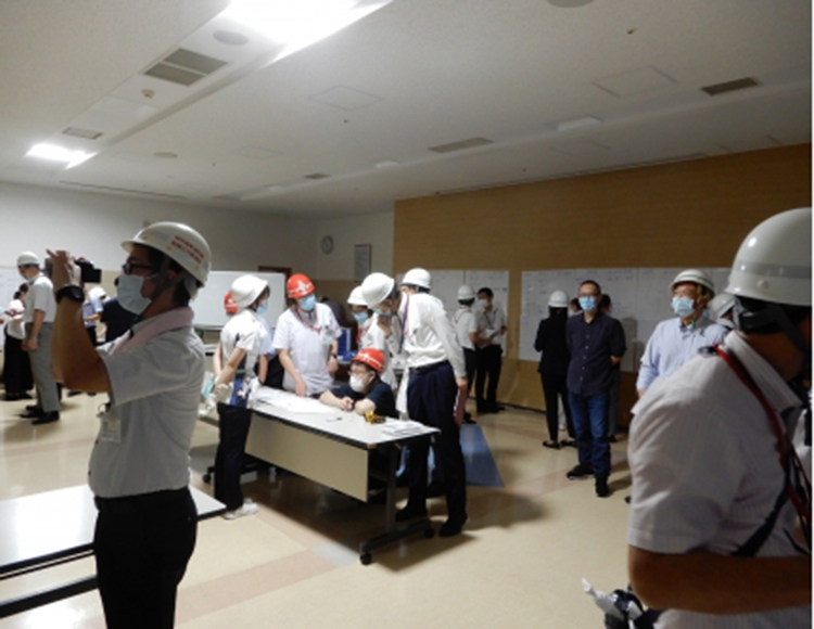 地震総合訓練です。毎年、想定が変更され今年は発災直後の想定でしたので、私も管理室で仕事していて地震が起き、揺れがおさまってから本部立ち上げに向かう行動をとりました。非常電源に切り替わるまでの暗い中での作業がとても難しいことも体験できました。今後に備えたいと思います。