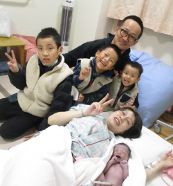 陣痛が強くなるまで少し時間がかかったのですが、3人のお兄ちゃんとパパの応援団と共に、ママとっても頑張りました!!