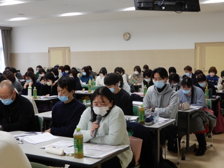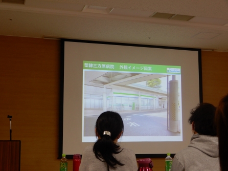 新A号館について建築準備室から。みんな興味津々です。まだ具体的には決まっていませんので自分達で働く病院をこんな風にあんな風にと自由に意見していけたらいいと思っています。