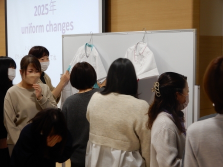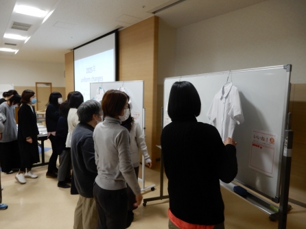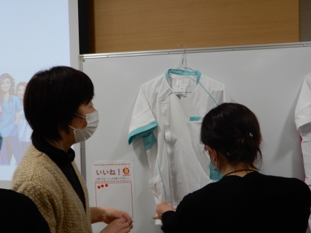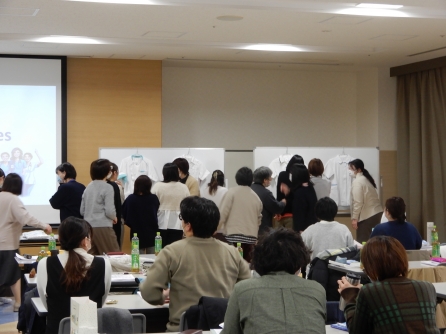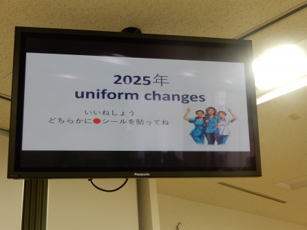ワークショップの昼休みを使って新しいユニホームの意見収集もしていました。