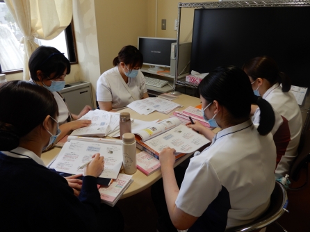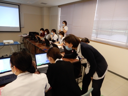 新人看護師たちの研修は看護部から少しずつ職場の研修に移行しています。