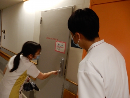 こちらはB3病棟、外科病棟になります。シャドイングです。点滴終了したら点滴棒を拭いて所定の位置に戻します。覚えることがたくさんありますが、まだまだ始まったばかり、1つ1つやっていきましょう。