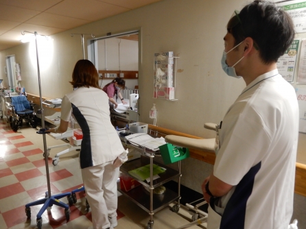 こちらはF3病棟、整形外科病棟になります。点滴の準備方法を学んでいました。