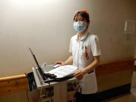 Nさん、がんばります!と。この病棟は新人看護師3名配属しました。職場長もとても褒めていました。十分頑張っていますよ~。