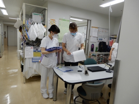 次はペアの先輩と情報共有。この日はプリセプターと一緒のシフトなのでプリプリのペアです。