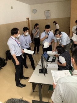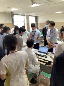 6月27日に外来部門でのミニリハーサルを実施し、当院職員や担当事業者の職員、約50名が参加しました。