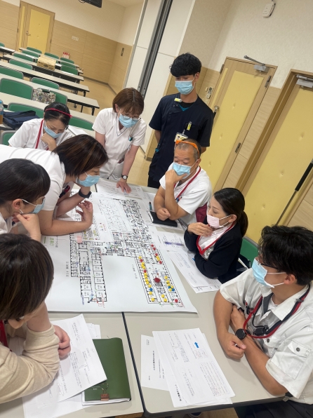 特に、安全面に配慮が必要な病棟での対応については、日頃の運用上の特性を踏まえた避難方法や、避難先でのスムーズな受け入れ体制などについても話し合いが行われました。