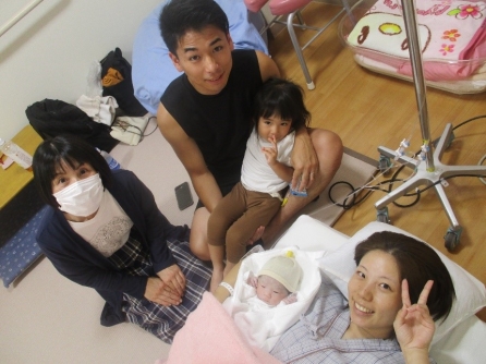 診察後から、陣痛が強くなり、その後は順調に進行しましたね!今回はご主人様が付き添ってくれ、サポートして下さいましたね☆お臍の緒も切ってくれました!