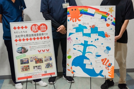 このキャンペーンでは、静岡県西部の学生が中心にとなり、10代や20代の若年層に献血の大切さを伝える呼びかける活動が行われました。また、実際に献血を行った方々から、輸血を必要とする患者さんに向けた温かい「応援メッセージ」が集められ、学生の皆さんが心を込めてボードにまとめてくださいました。