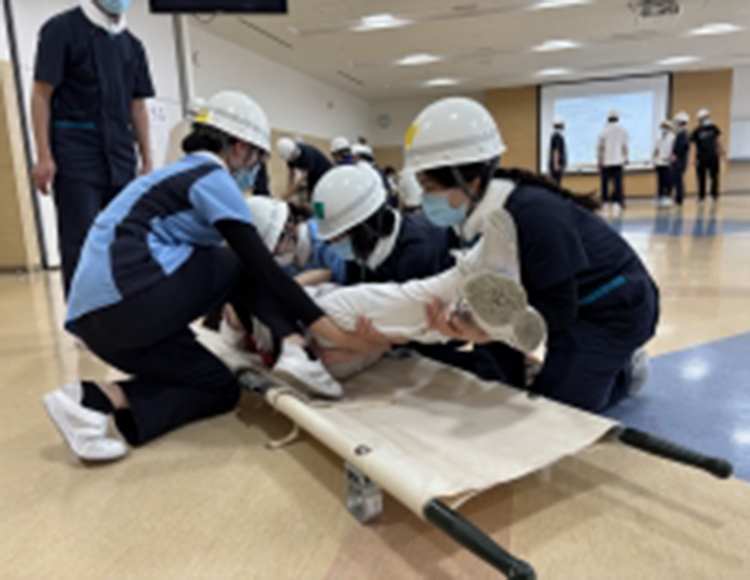 当院では、患者さんの命と安全を守るため、災害時の対応力を職員一人ひとりが身につけることを大切にしています。 4月17日・18日の2日間にわたり、新人職員を対象とした防災訓練を実施しました(全3班に分けて行いました)。 実際の災害を想定し、次のような訓練を行いました。 ・規律訓練 ・地震発生時の初動対応 ・非常ベル鳴動時の発見・通報 ・消火器、消火栓の取り扱い ・患者さんの避難誘導 ・担架を使った搬送訓練 ・院内の避難経路確認 ・防災設備の見学(防災センター)災害時は、迅速かつ的確な行動が求められます。新人職員たちは真剣な表情で訓練に取り組み、「自分が患者さんを守る立