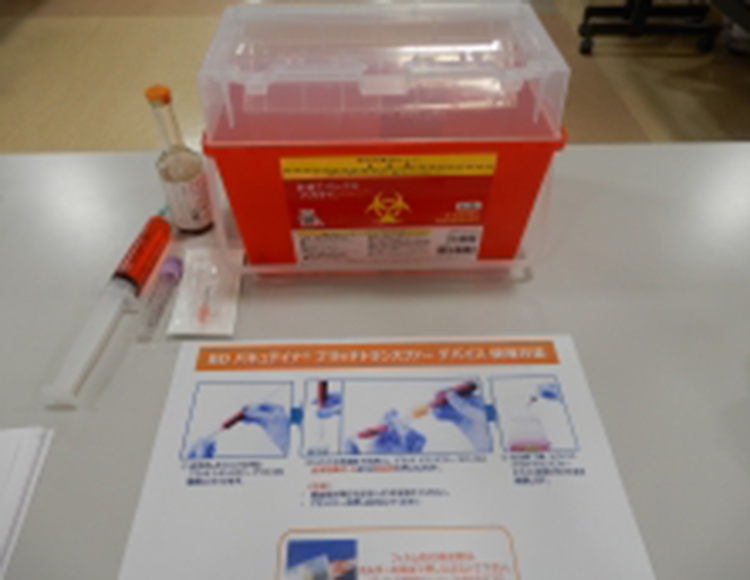 採血をした後に検査項目に合わせてスピッツに検体を分けていく作業があります。針がついた状態でそれぞれのスピッツのゴム管に刺していきますので針刺しの危険を伴います。それを回避できるのが分注キットです。先行導入していた領域もありますが、今回院内全体になりました。これでまた一歩安全が高まりました。そのために道具を正しく使っていきたいと思います。