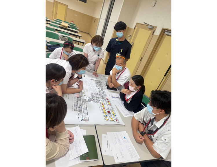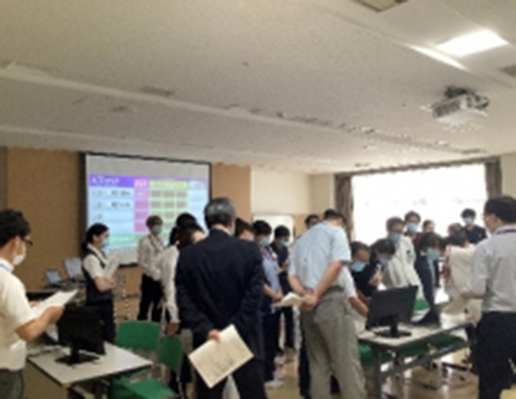 7月3日(木)、火災発生時の対応を確認する「火災対応講習会」が行われました。 今回の講習会は、7月15日に予定されている火災総合訓練に向けた事前準備として実施され、火点(火災発生場所)となる病棟をはじめ、隣接する職場や応援職場のスタッフが参加しました。 訓練では、火災が発生しやすい場面を想定しながら、各職場の役割や連携の取り方、応援スタッフの動きなどを確認。患者さんを安全に避難させるために必要な視点や注意点を共有しました。 特に、安全面に配慮が必要な病棟での対応については、日頃の運用上の特性を踏まえた避難方法や、避難先でのスムーズな受け入れ体制などについても話し合いが行われました