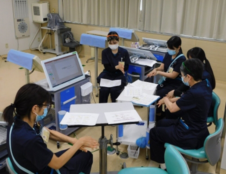 5月23日に手指衛生についての勉強会を開催しました。 実際に手指消毒液を用いて正しい手順を確認し、どのタイミングで手指消毒を行うのが効果的かなど学び直しました。 今回、手指消毒の効果の高さや効率の良さを再確認できたことで、これまで以上に衛生管理の意識をもって検査ができるようになったと思います。今後も患者さまが安心して受診できるよう、衛生管理の整った眼科検査室を継続していきます。