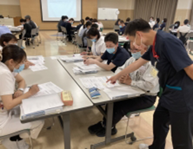当院では病院全体の接遇を向上させることを目的として、毎年、接遇推進者研修(全2回)を開催しています。 5月30日に看護部、医療技術部、事務部の各職場から43名が参加し、第1回目の集合研修がありました。 お互いの身だしなみをチェックしあったり、人と接する際の表情や言葉使いなど、接遇の基本について再確認しました。 また小グループでの意見交換をとおして、それぞれの職場での活動計画の立案方法を学びました。職員一人ひとりが病院を利用される皆さまに気持ちの良い対応ができるよう取り組んでまいります。