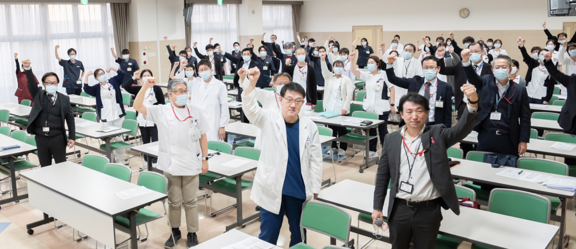 当日は院長、総看護部長が中心となって今後の方向性を共有し、最後にワーキンググループ委員長より力強いメッセージが送られるなど、病院全体で受審に向けて気持ちを一つにしました。