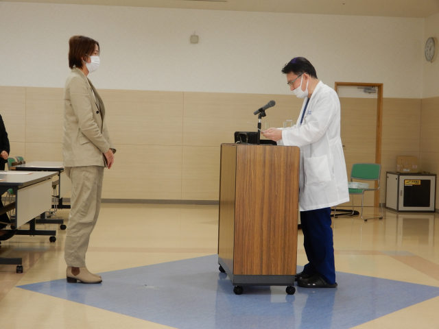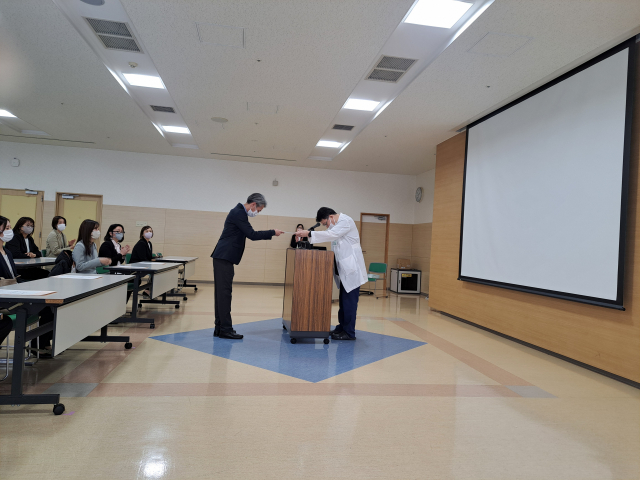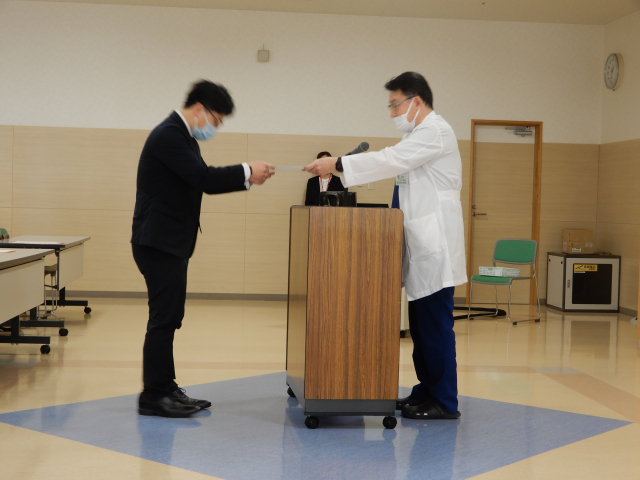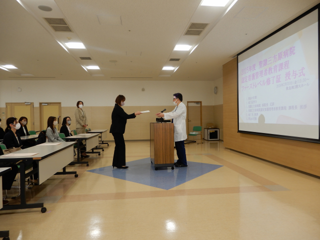 全員を掲載できませんが、病院長から一人ずつ修了証書が授与されました。おめでとうございます。