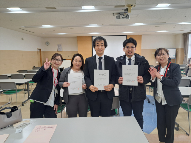 当院の修了生3名と専任教員山田次長と一緒に。おめでとう!