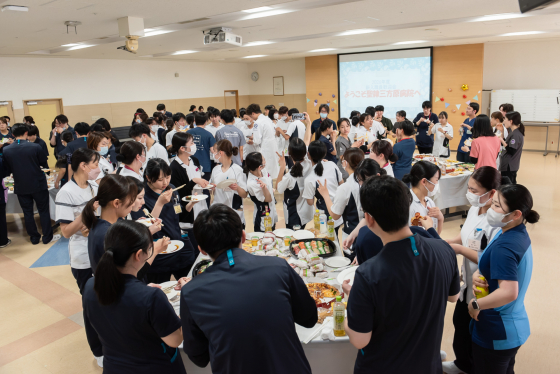 2026年度、新たに研修医16名、看護部門62名、医療技術部門20名、事務部門9名の皆さんが入職されました。