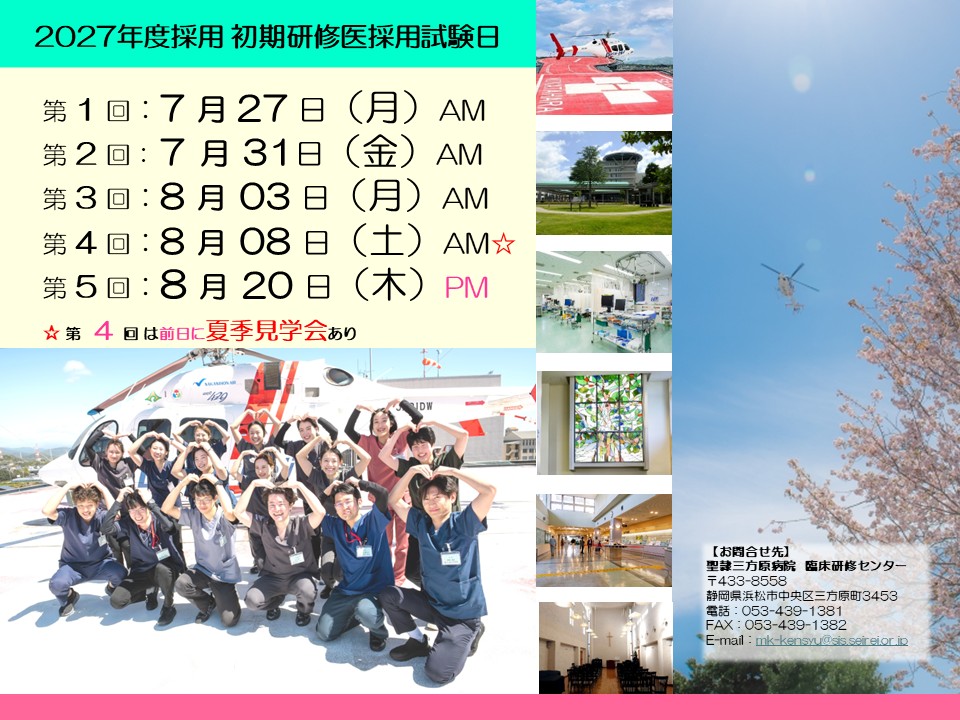 本日は『2027年度採用初期研修医 試験(予定)』のご案内です。