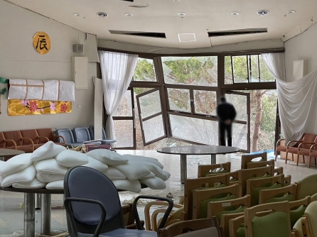 実際視察に行った介護施設は2階は倒壊していたが1階は比較的無事な状態であった。