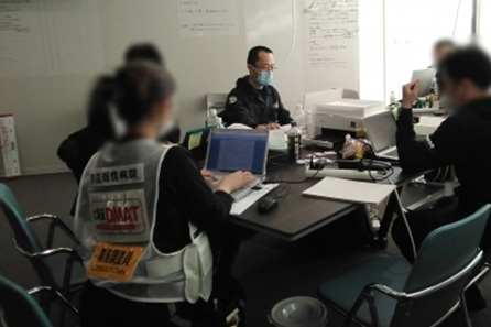 - 7:29 DMAT活動拠点本部にて代表者2名で受付後、全体ミーティング