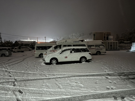 - 7:40 搬送車両がすぐ使用できるように、各DMATへ車両の雪かき依頼