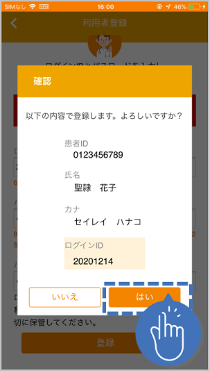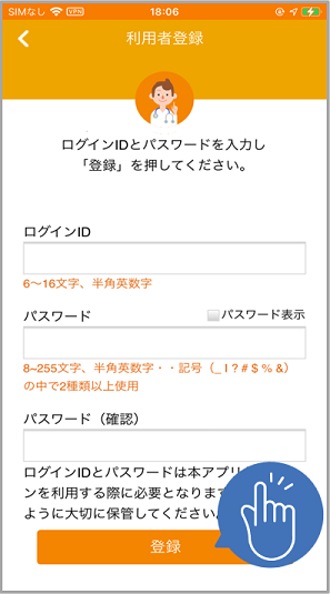 来院後の登録手続きでログインID、パスワードの登録が必要になります。