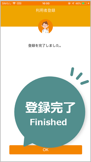 登録完了です。「OK」をタップすると、ログイン画面へ移動します。