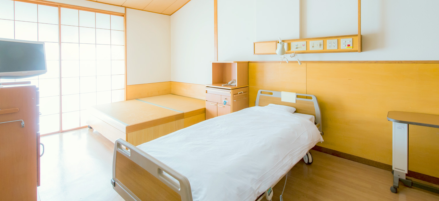 一般病棟と同様の保険診療の対象となります。厚生労働省より「緩和ケア病棟」の許可を受けているため、病状に関わらず負担は定額です。病室はすべて個室ですが個室料はいただいておりません。