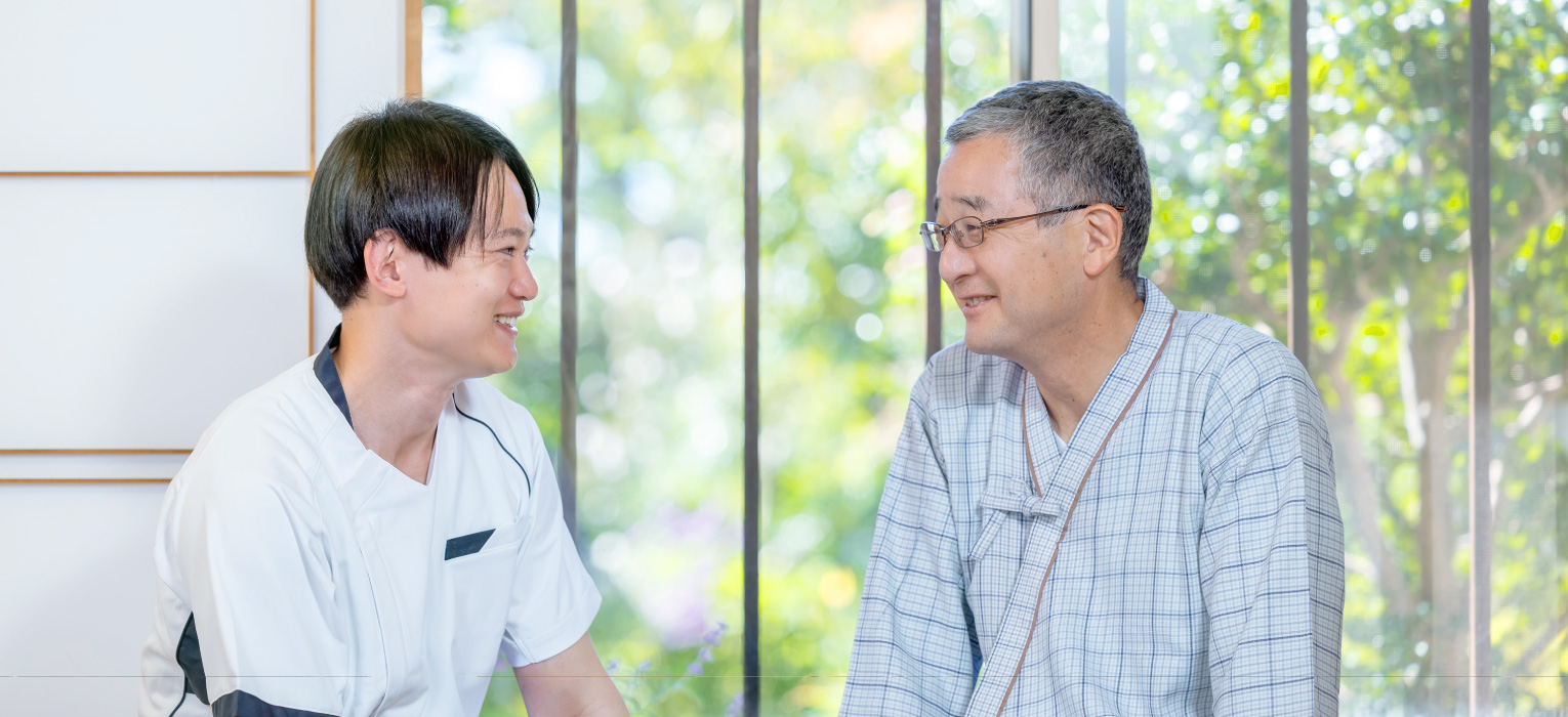 必ず付き添いをお願いするということはありません。但し、個室ということもあり患者様が安心して過ごすために、患者様の病状が変化した場合など、こちらで付き添いが必要と判断した場合には、ご相談させていただきます。Q