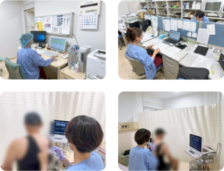 その日の症例の情報共有や問題点を話し合います。また、定期的に時間内の比較的空いているときには、ミーティングも開催。