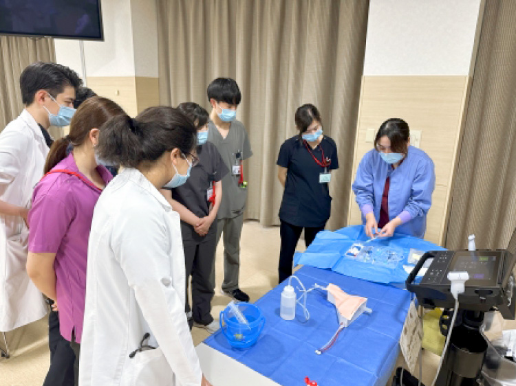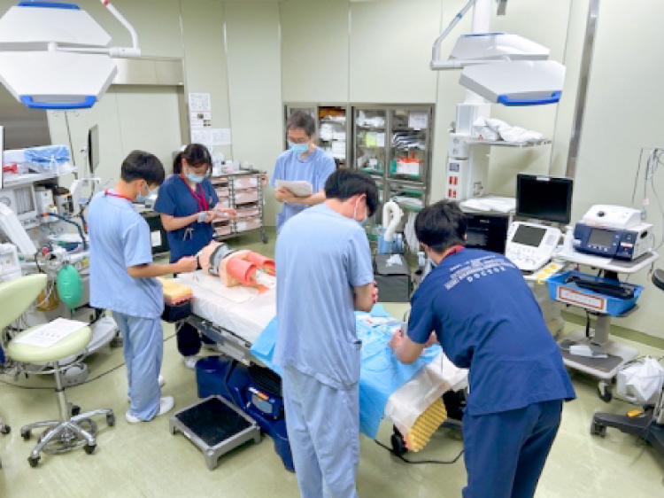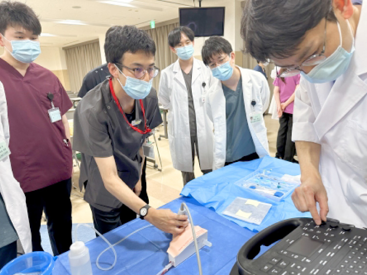 主な取り組みとして、年に2回 研修医を対象とした勉強会(気管挿管、CVC挿入)を開催しています。勉強会の様子は、研修医日記で紹介されています。