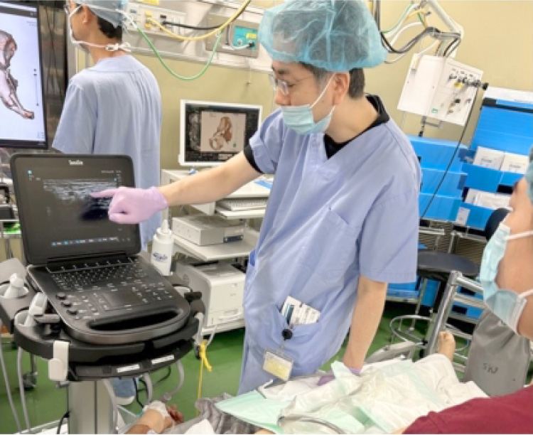 超音波ガイド下神経ブロックは、麻酔科医として必須のテクニックの一つとなっており、術後鎮痛などの周術期管理の一環として多くの症例を経験できます!当院の症例数は静岡県内でトップレベルであり、四肢のブロック・体幹のブロックなど様々なブロックを行っています!!