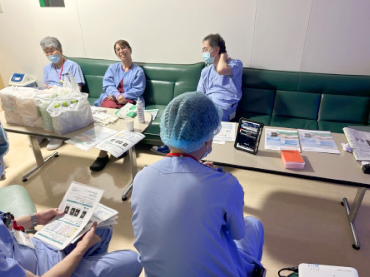 時短勤務でも参加できるような時間内に手術室内の決め事や改善点など、その時々の問題点などをみんなで解決しています。