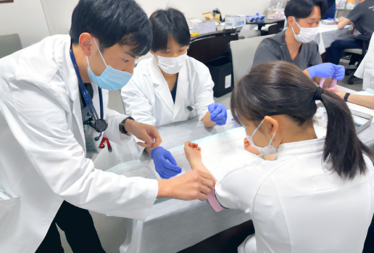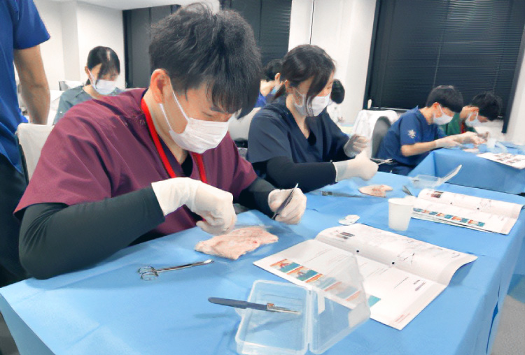 CVカテーテルの講習会を開催しています。講義を経てシミュレーターを使用する実技の勉強会です。