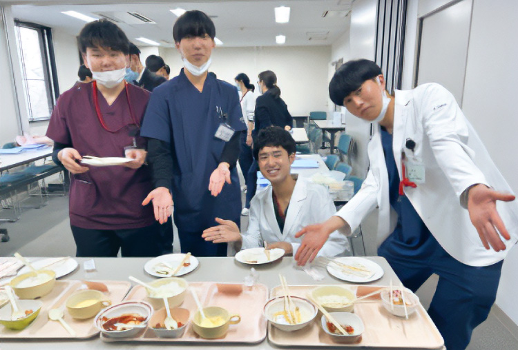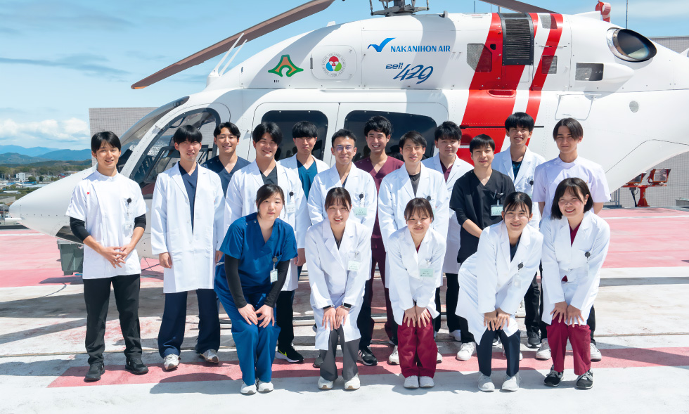 研修医達を各診療科ローテートからフリーにして、教育・研修に集中する機会を確保しています。日々の診療以外にも外部講師招聘や研修医が行う症例プレゼン、ICLS、JATEC、文献検索演習、EBM学習、縫合練習や気道管理などなど多彩なメニューを企画して実施していきます。