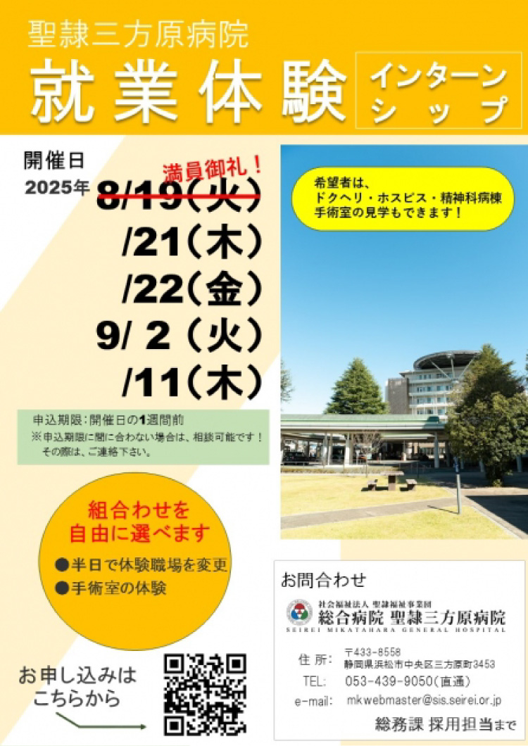 | 第1回就業体験 | 2026年3月16日(月) | お申し込みはこちら! |