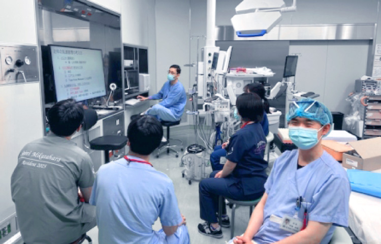 指導医の指導の下、専攻医だけではなく初期研修医も一緒に研修に励んでおります。
