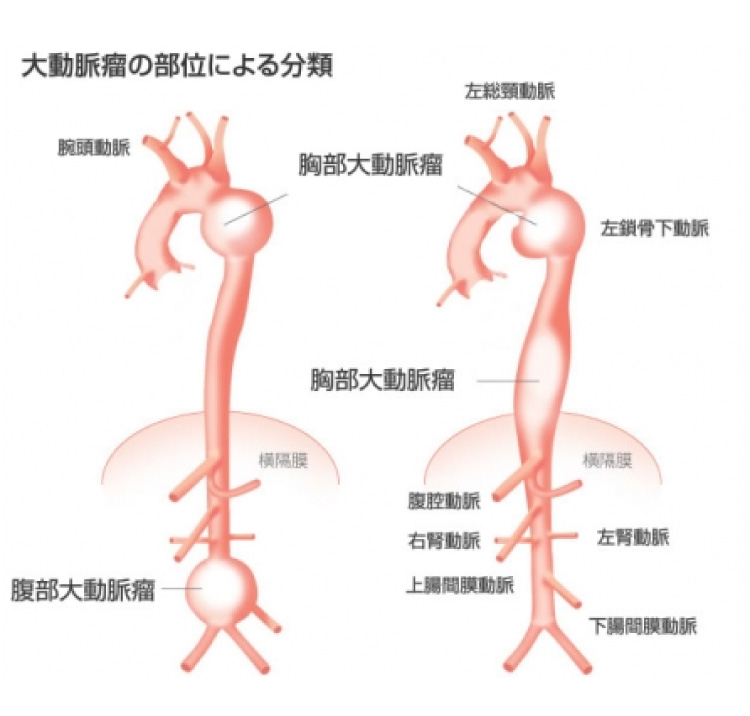 大動脈瘤は、発生する場所によって以下の3つに分けられます。- 腹部大動脈瘤: 腎臓より下の腹部大動脈に発生