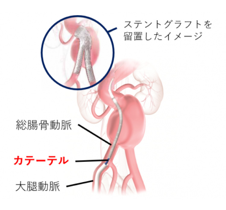 | カテーテル治療 | 血流が滞った血管にステントを広げて留置して血流を再開させる治療 |